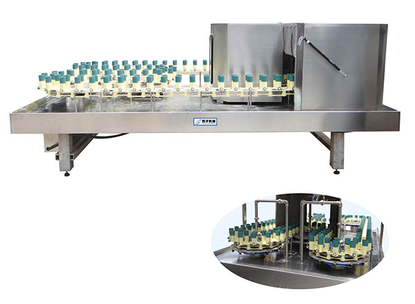 SYGZ-24-16-1型沖瓶灌裝打塞三聯機 三聯體機主要是為葡萄酒、果酒灌裝而設計的設備,本設備是將翻轉沖瓶機、負壓灌裝機、打塞機有 機組合為一體,設備結構緊湊,節省安裝空間 ...